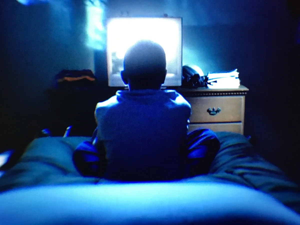 He sat on his bed (the sunken place) in front of a TV, rather than participating in real life.